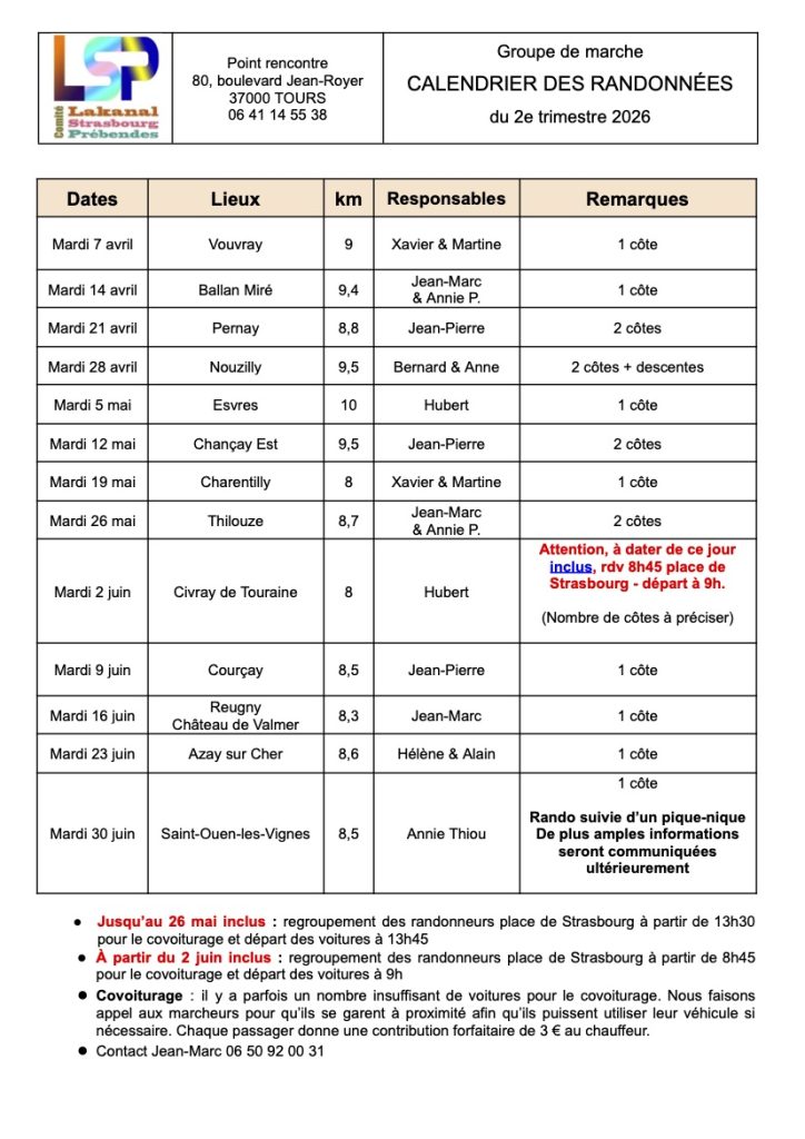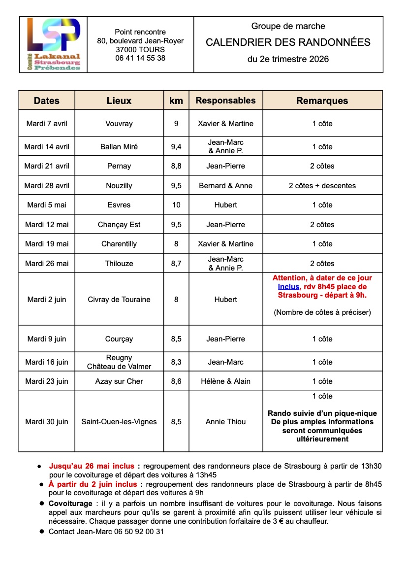 CALENDRIER GROUPE DE MARCHE
