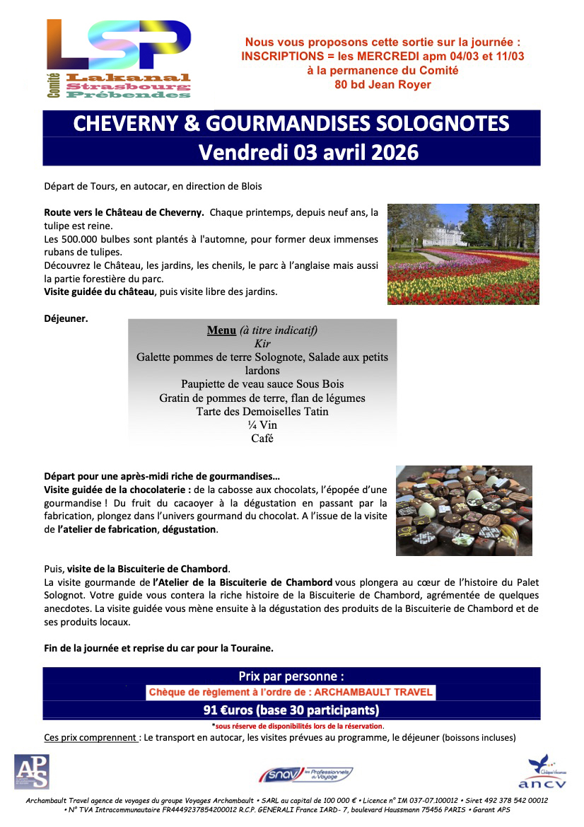 SAMEDI 20 septembre : Départ à 08h00 pour le trajet Tours-Le Croisic. Rendez-vous à midi au Domaine de Port aux Rocs pour un pique-nique tiré du sac.