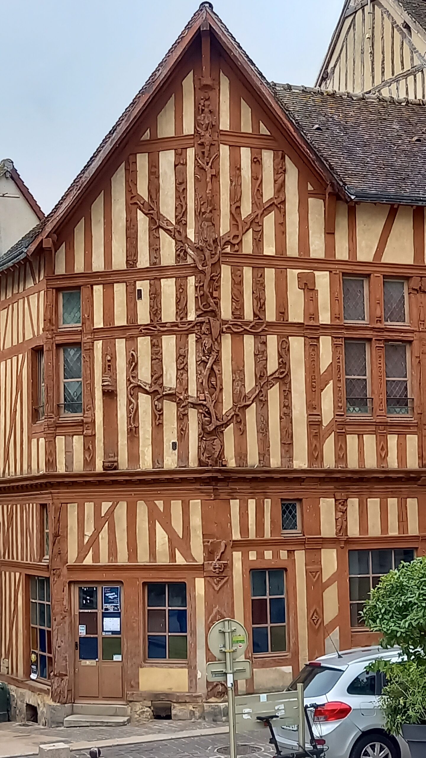 Le 3ème jour a été une journée complète de randos en direction de Joigny. Le groupe a ainsi découvert cette ville au bord de l’Yonne, avec ses 3 églises : Saint-Thibault, Saint-Jean et Saint-André.  À Joigny une imposante maison à colombages dispose d’une étonnante façade : sur les montants de bois est sculpté l’arbre de Jessé, reproduisant la généalogie du Christ.