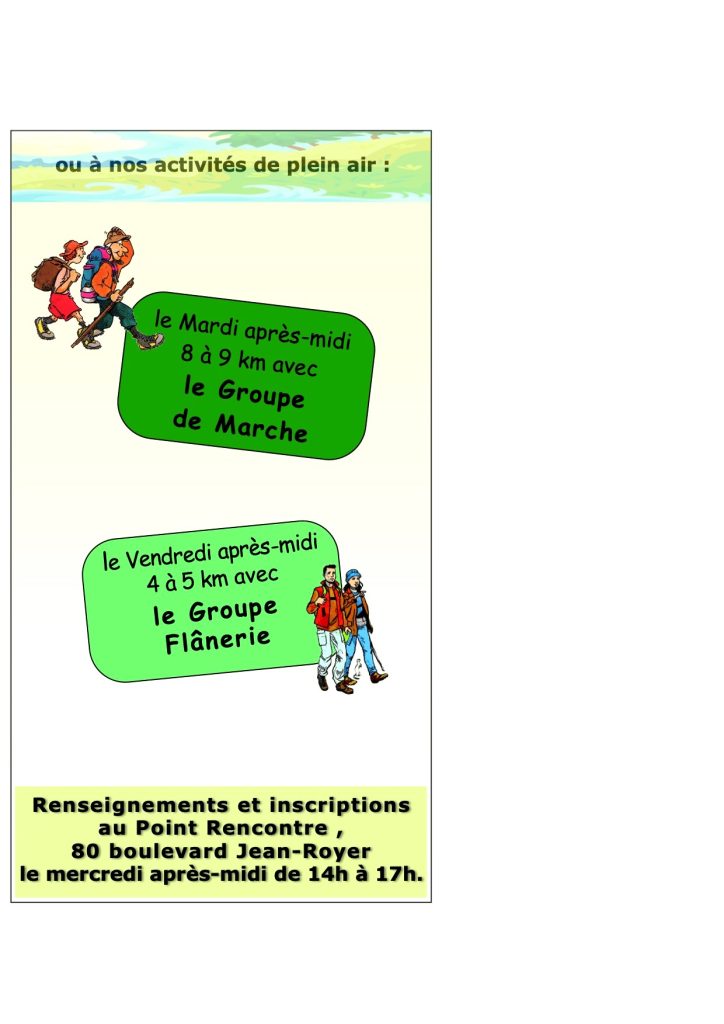 Le groupe de marche du comité est constitué de 60 inscrits au maximum, dont 9 animateurs qui préparent et encadrent les randos en toute sécurité. Un certificat médical d’aptitude à la randonnée est demandé à l’inscription, des consignes de sécurité doivent être lues et approuvées.
